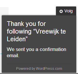 4. U ontvangt een email op het opgegeven mailadres waarmee u kunt bevestigen dat u inderdaad de Vreewijk site wilt ‘volgen’ en berichten op de site als emailberichten wilt ontvangen: