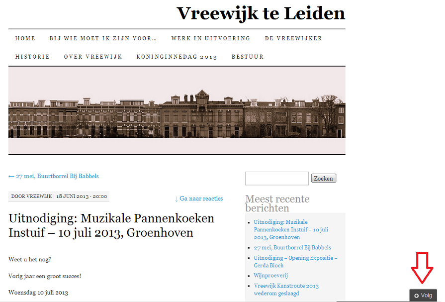 Indien u wilt veilig stellen dat u na plaatsing van een nieuw bericht op de Vreewijk website automatisch een email ontvangt met daarin de nieuwe informatie; volg dan de volgende stappen: