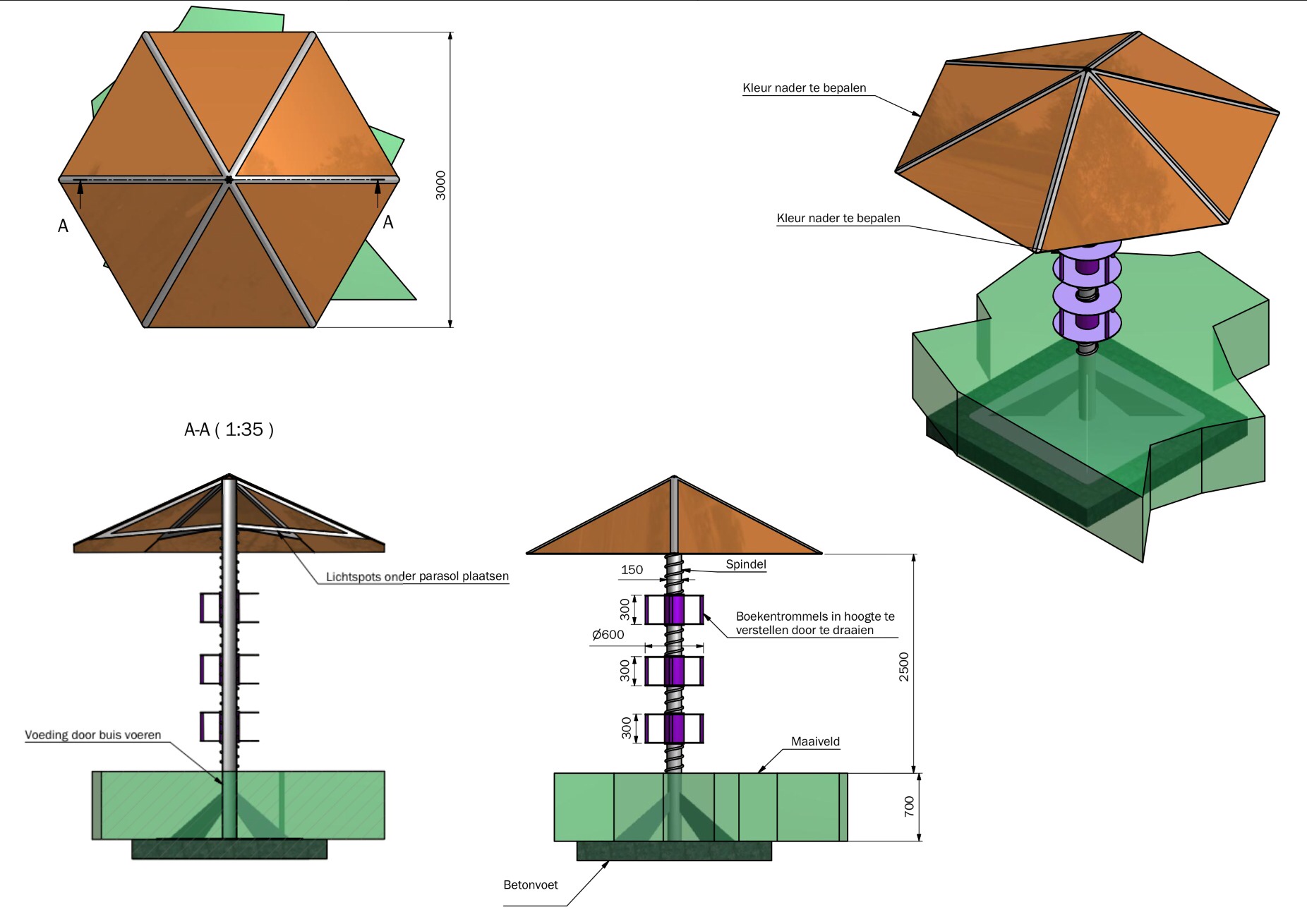 Het winnende ontwerp werd tijdens de jaarvergadering van het Vreewijkcomité op 10 januari 2013 getoond. De jaarvergaderingen vinden sinds jaar en dag plaats in de grote zaal van Groenhoven. Liny Bijl heeft vervolgens de financiering van de realisatie geborgd. Er kwam een genereuze gift van de Vrienden van Groenhoven en Liny heeft een sponsorverzoek ingediend voor het resterende deel bij het Ondernemersfonds Luifelbaan Leiden. Het Ondernemersfonds kende vrij snel al een even genereuze gift toe. Nu kon architect Ben Schildwacht aan de slag. Hij vertaalde het ontwerp als volgt en zag de plaats waar de boekenboom bij Groenhoven zou kunnen staan: