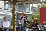Hieronder een kleine impressie van het podium “Onder de boompjes” bij Topaz / Groenhoven van het Klein Leids Liederen Koor en de Collegium Musicum Jazz Band: