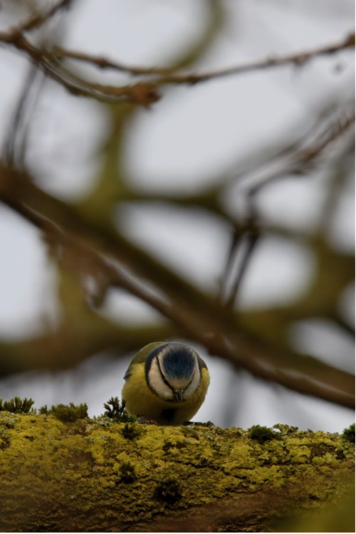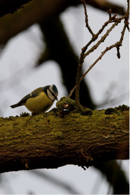 In tegenstelling tot het najaar zijn er nu groepjes vogels van één soort te zien, aangezien het broedseizoen nadert. Vooral in de Ruigte valt dit goed op bij bijvoorbeeld de pimpelmees (Cyanistes caeruleus). Zowel de pimpelmees als de koolmees zijn typische bosvogels, wat duidelijk zichtbaar is aan hun geelgroene verenkleed. Wanneer deze vogels op zoek zijn naar voedsel op een met gele korstmos en groene mossen begroeide eikentak, biedt het verenkleed van de pimpelmees uitstekende camouflage. De meeste vogels nemen kleuren waar zoals mensen dat doen, maar met een extra gevoeligheid voor het ultraviolet (UV) spectrum. In het UV-spectrum verschijnen de gele, groene en blauwe tinten van de pimpelmees veel intenser. Vrouwtjes geven vaak de voorkeur aan mannetjes met een grotere en intensere blauwe kruin in het UV-spectrum, wat mogelijk duidt op een hogere fitness van het mannetje. Opmerkelijk is dat roofvogels, die op deze kleine vogels jagen, geen UV-zicht hebben.