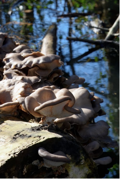 De omgewaaide popelier in de Oude Sloot is voldoende met water doordrenkt om de groei van de gewone oesterzwam (Pleurotus ostreatus) tot stand te brengen, weer een prachtig gezicht. Een zeer geliefde paddenstoel in de keuken die ook veel wordt gekweekt voor dit doel. Met kweeksetjes die verkocht worden is dit ook goed zelf te doen. Naast zijn smaak is de oesterzwam ook nog gezond: ze bevatten een lage concentratie aan lovastatine, een cholesterolverlagende stof.