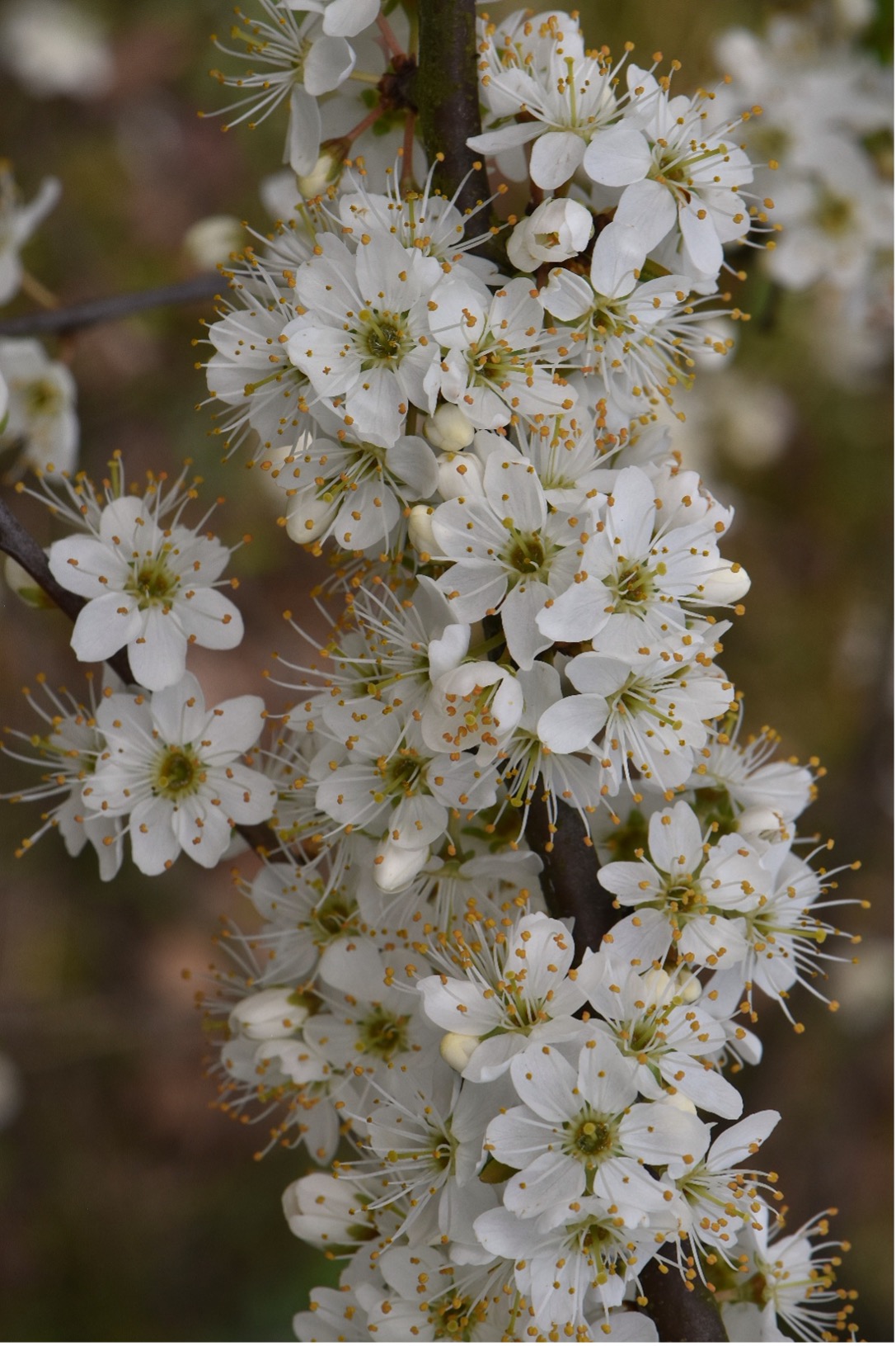 Wanneer men de trap naar de top van de berg volgt, treft men diverse sleedoorns (Prunus spinosa) in bloei aan. Deze struik uit de rozenfamilie (Rosaceae) bereikt een hoogte van 2 tot 6 meter en is inheems in de Benelux, waar hij voornamelijk langs bosranden groeit. Het hout van de sleedoorn staat bekend om zijn hardheid. De benaming van de heester bevat een oud woord voor pruim, “slee,” dat verwant is met het Slavische woord voor pruim. De bloemen dienen als vroege nectarbron voor insecten, hetgeen vooral van belang is voor overwinterende vlinders en motten. In De Ruigte kunnen op warme dagen citroenvlinders worden waargenomen.