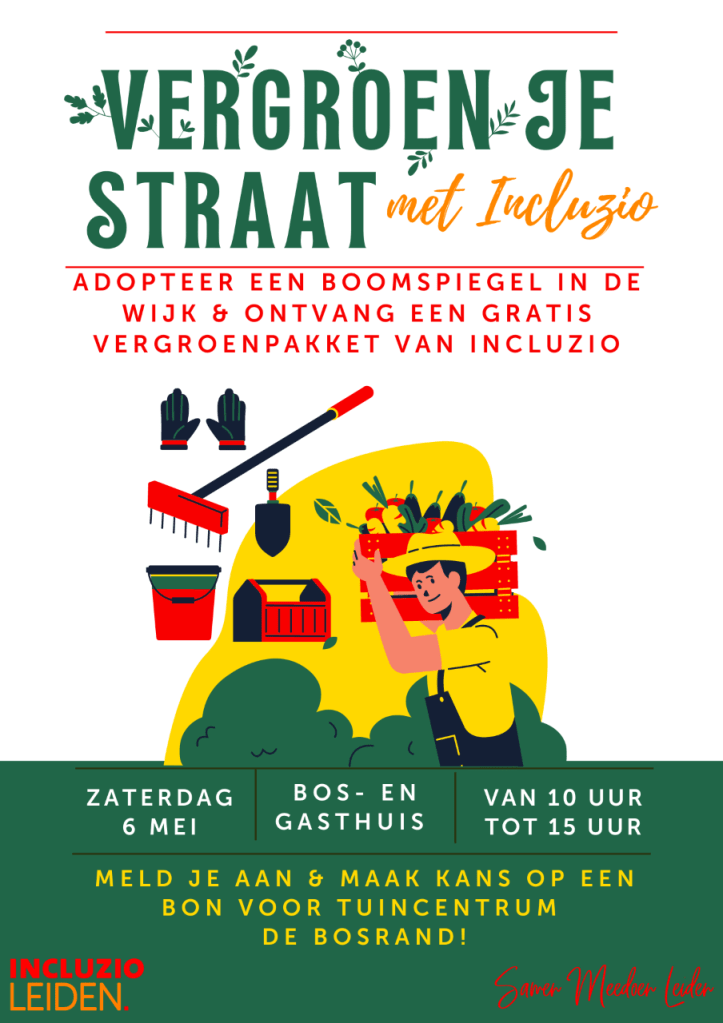 Op zaterdag 6 mei wil Incluzio samen met buurtbewoners de boomspiegels in de wijk een groene make-over geven. Doe je mee?
